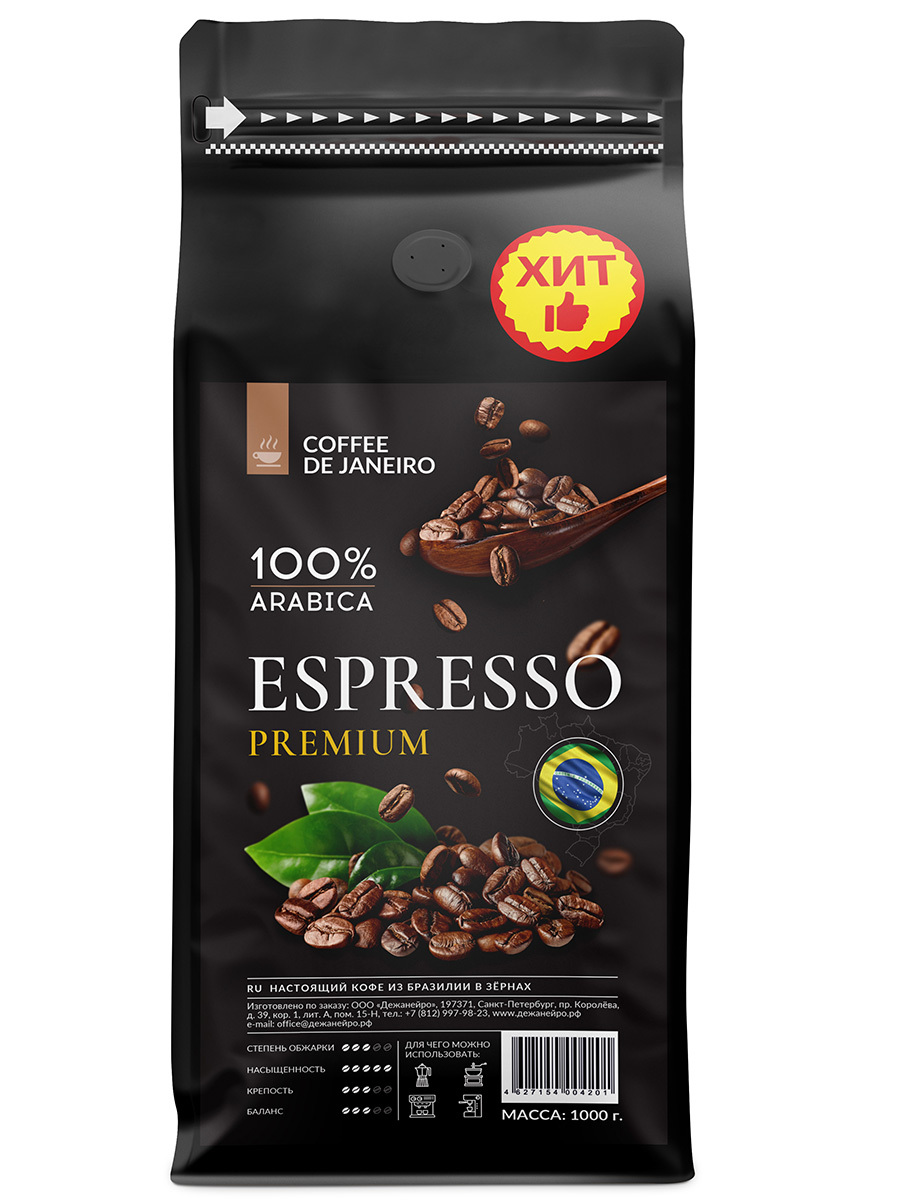 Кофе в зёрнах DE JANEIRO ESPRESSO PREMIUM.