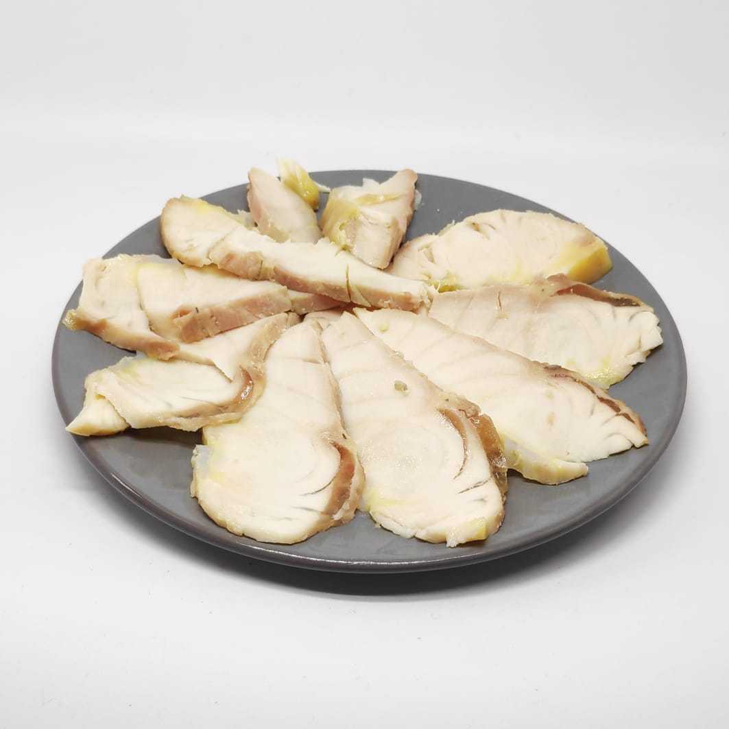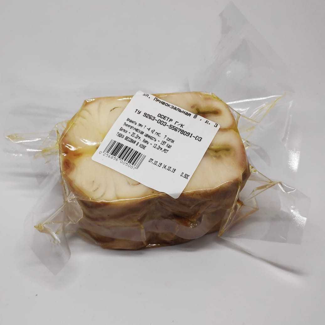 Осетр – благородный деликатес, который привлекает внимание аппетитным видом, изумительным вкусом и невероятной пользой для организма. Осетрина горячего копчения имеет нежнейшую структуру. В ней практически нет костей, рыбка питательная и в меру жирная. При горячем копчении осетра используется минимум соли, поэтому его можно смело рекомендовать людям, следящим за фигурой. Рыба коптится на натуральном дыме, с использованием щепы фруктовых деревьев.